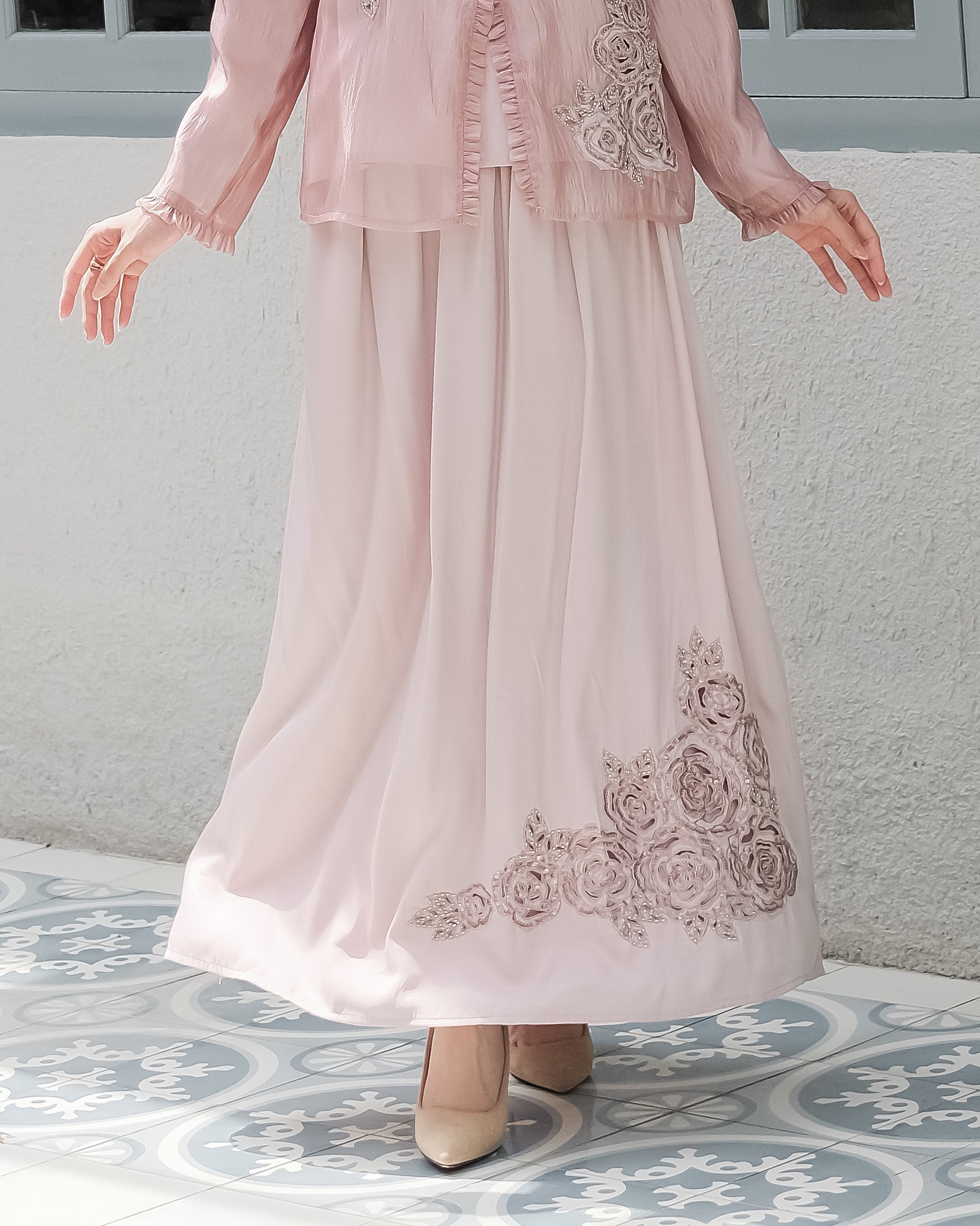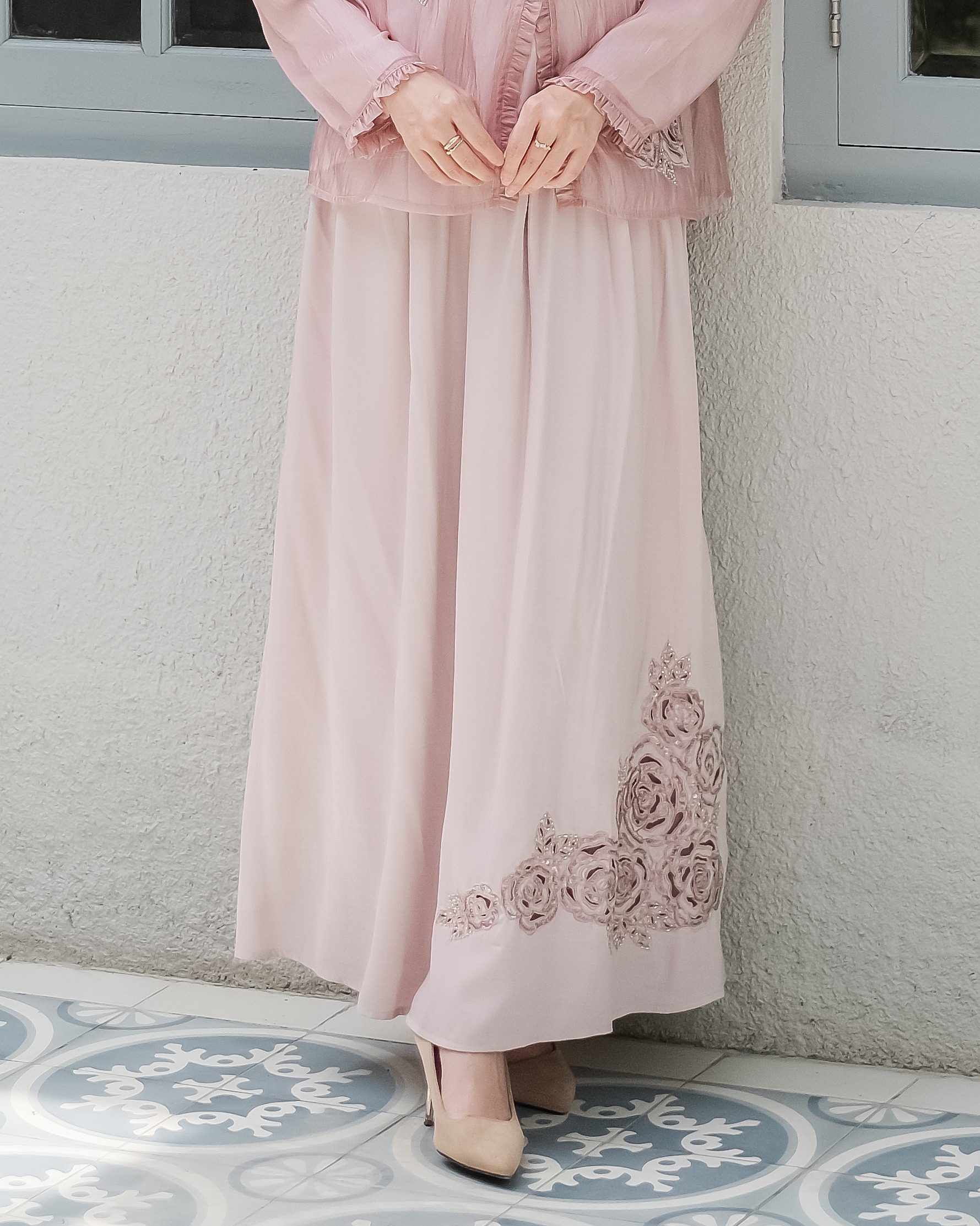 - Aksen bordir berpayet di bagian bawah