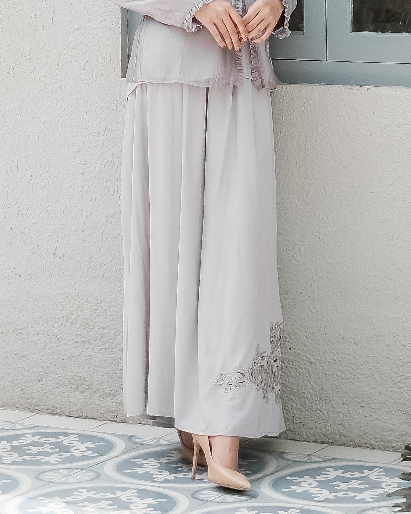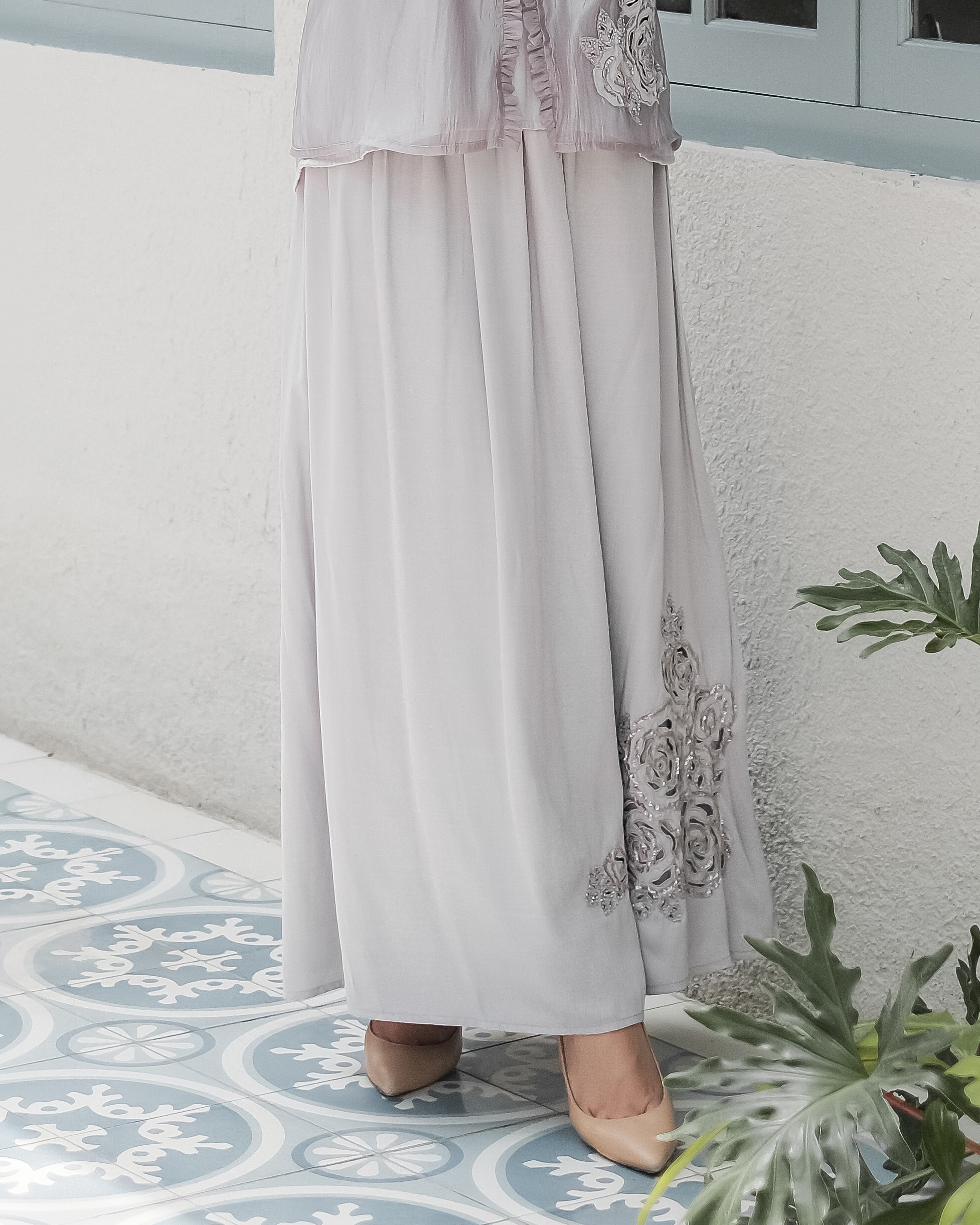 - Aksen bordir berpayet di bagian bawah