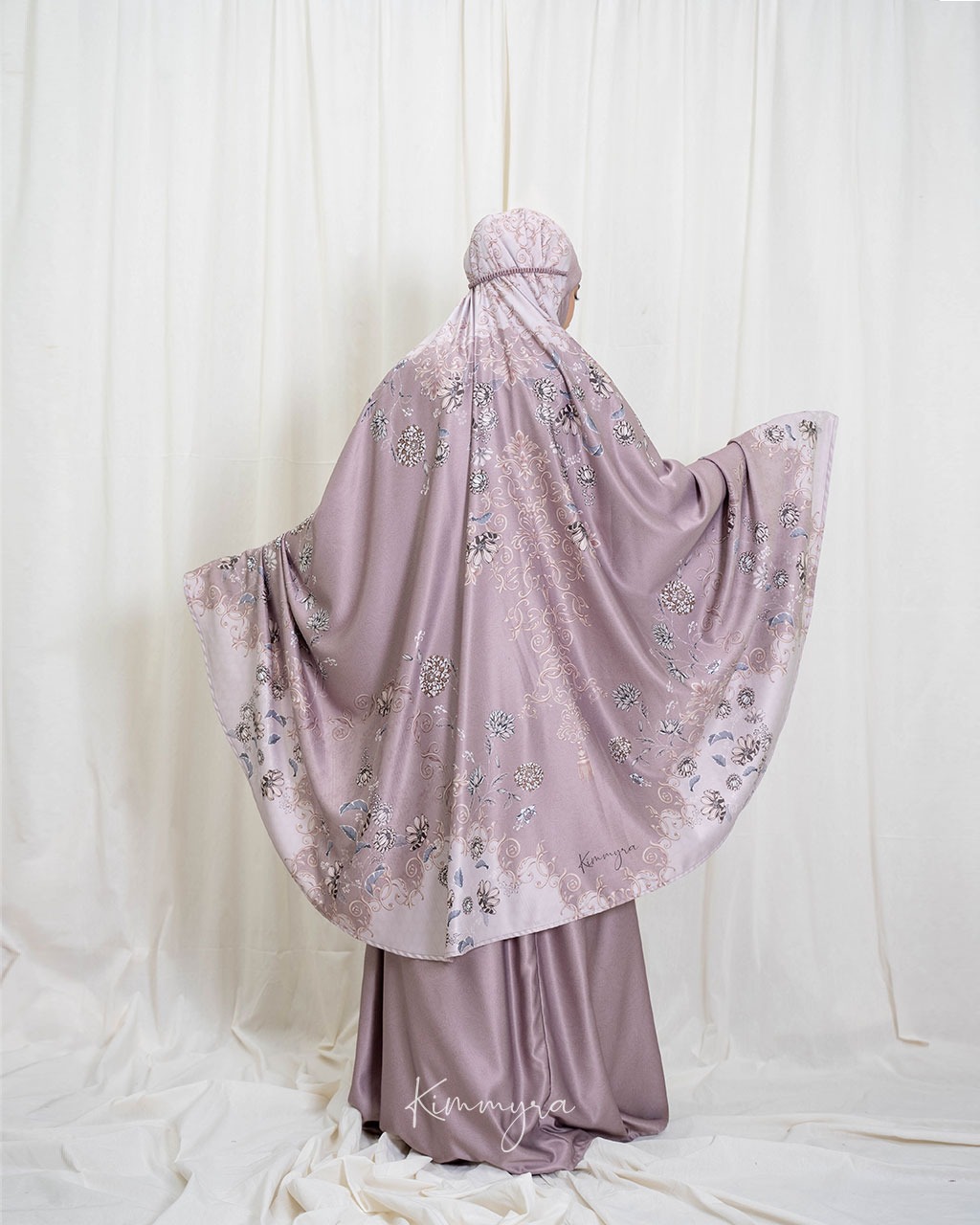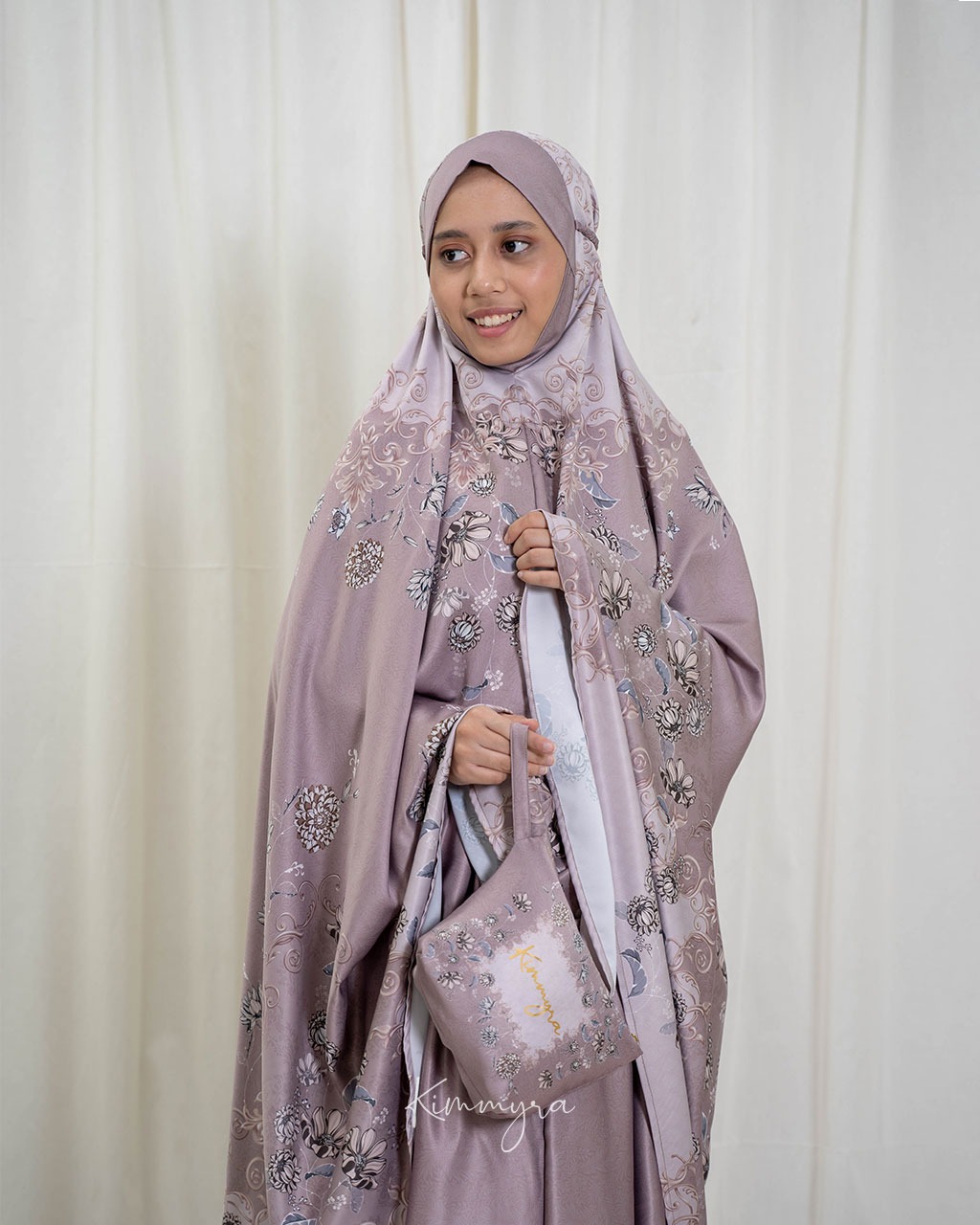 Bisa pesan custom nama (tulis di kolom PESAN saat hendak checkout, jika tidak diisi maka akan tertulis "KIMMYRA" di kolom nama di mukena/sajadah)