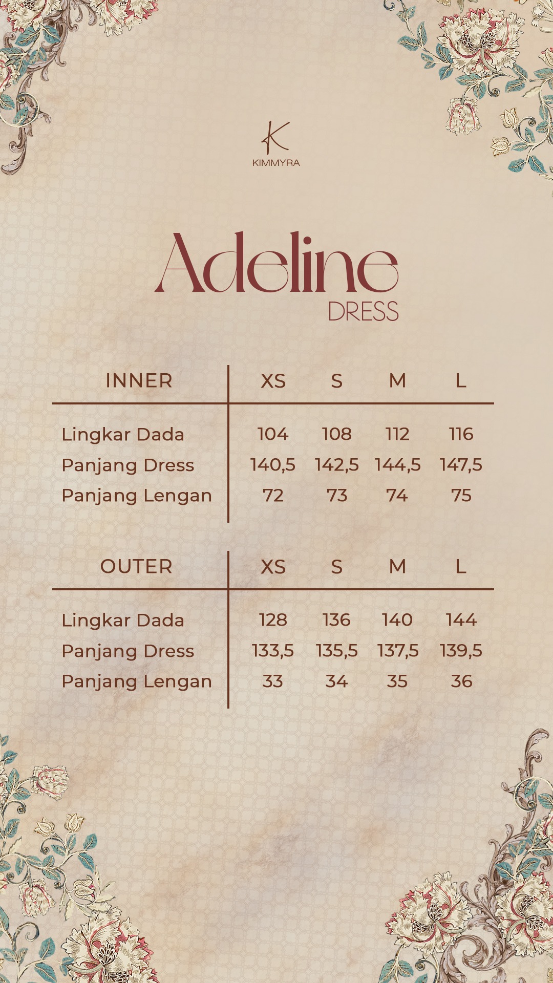 Panjang Dress : 133.5 / 135.5 / 137.5 / 139.5