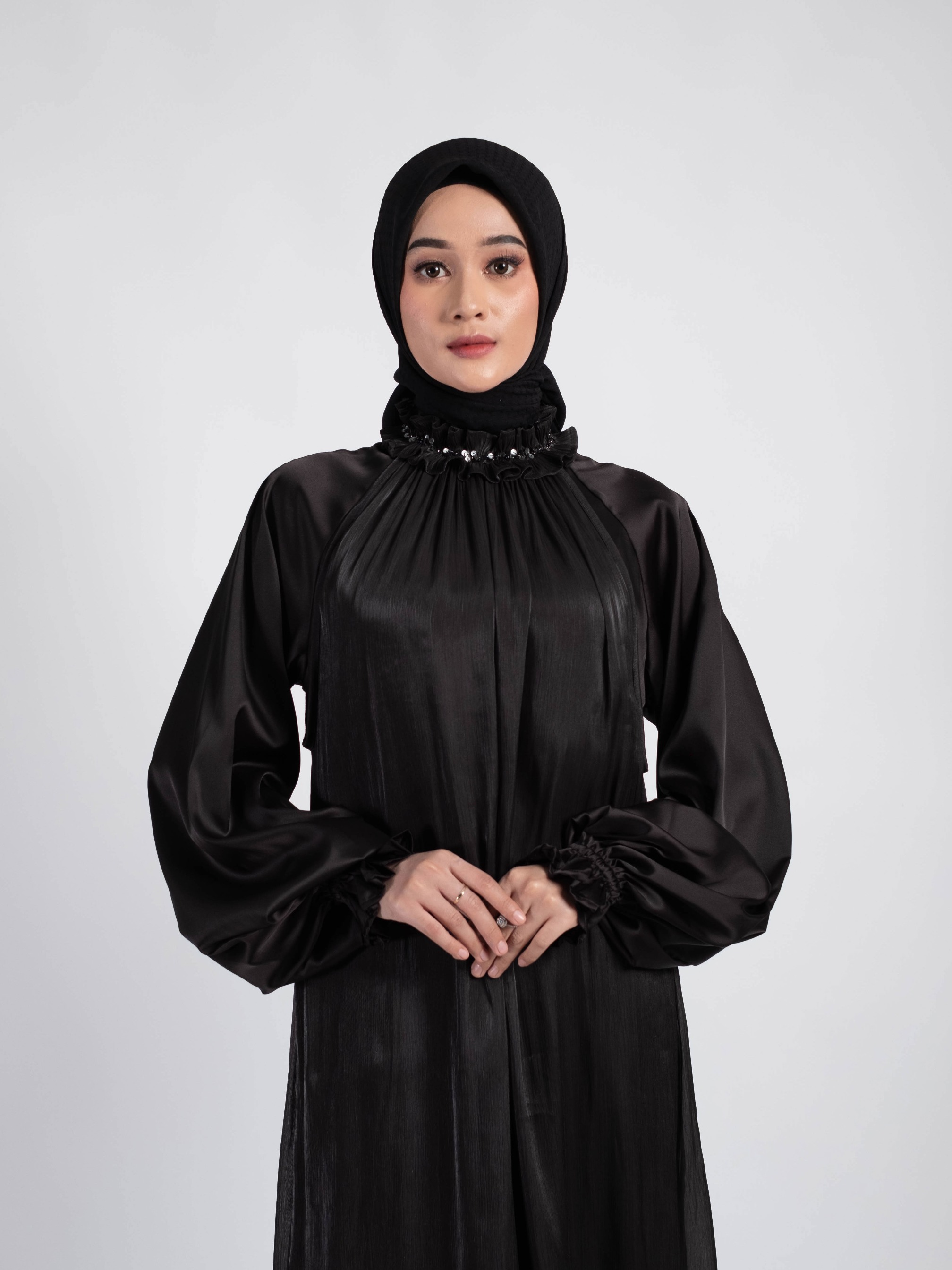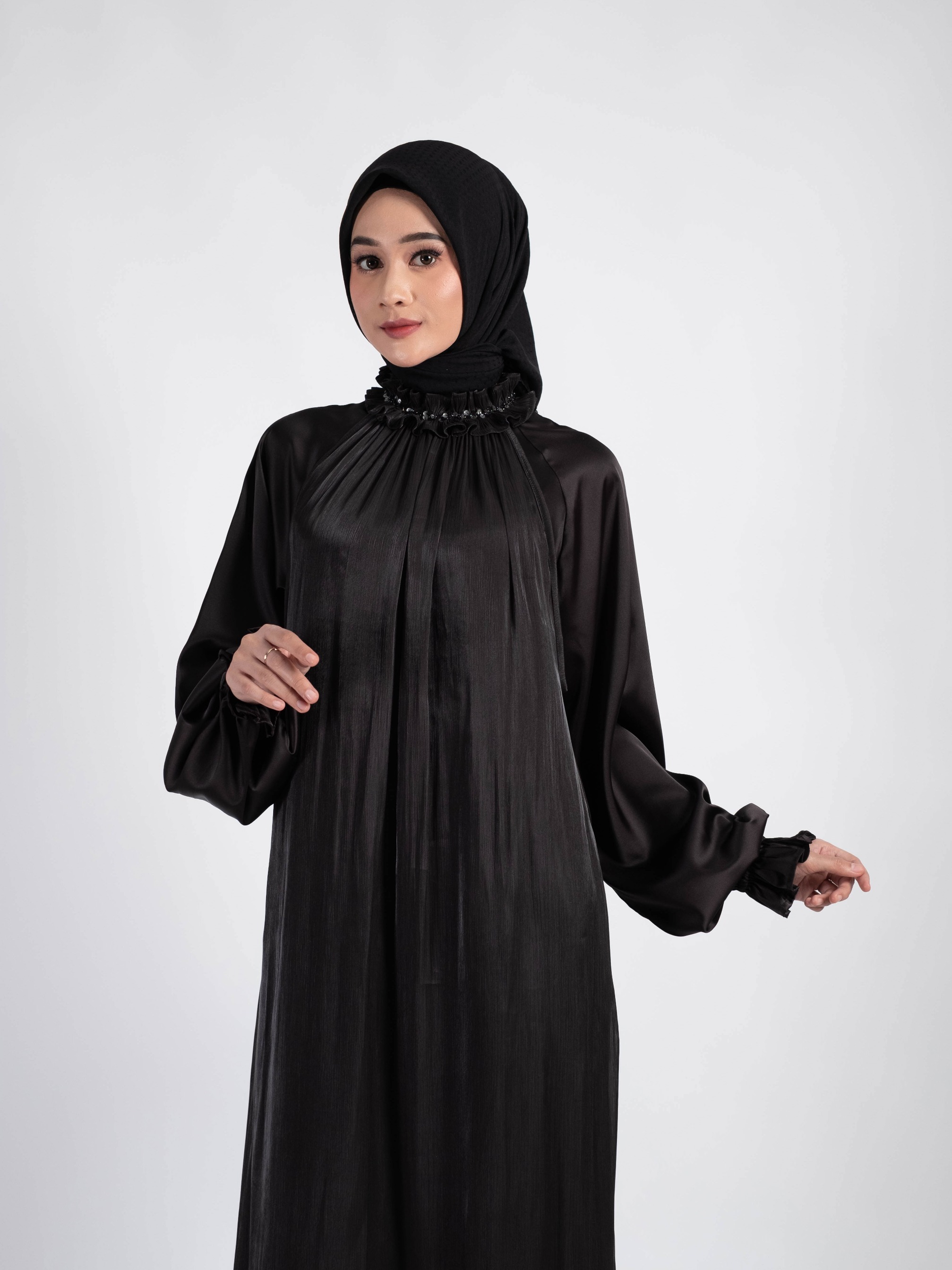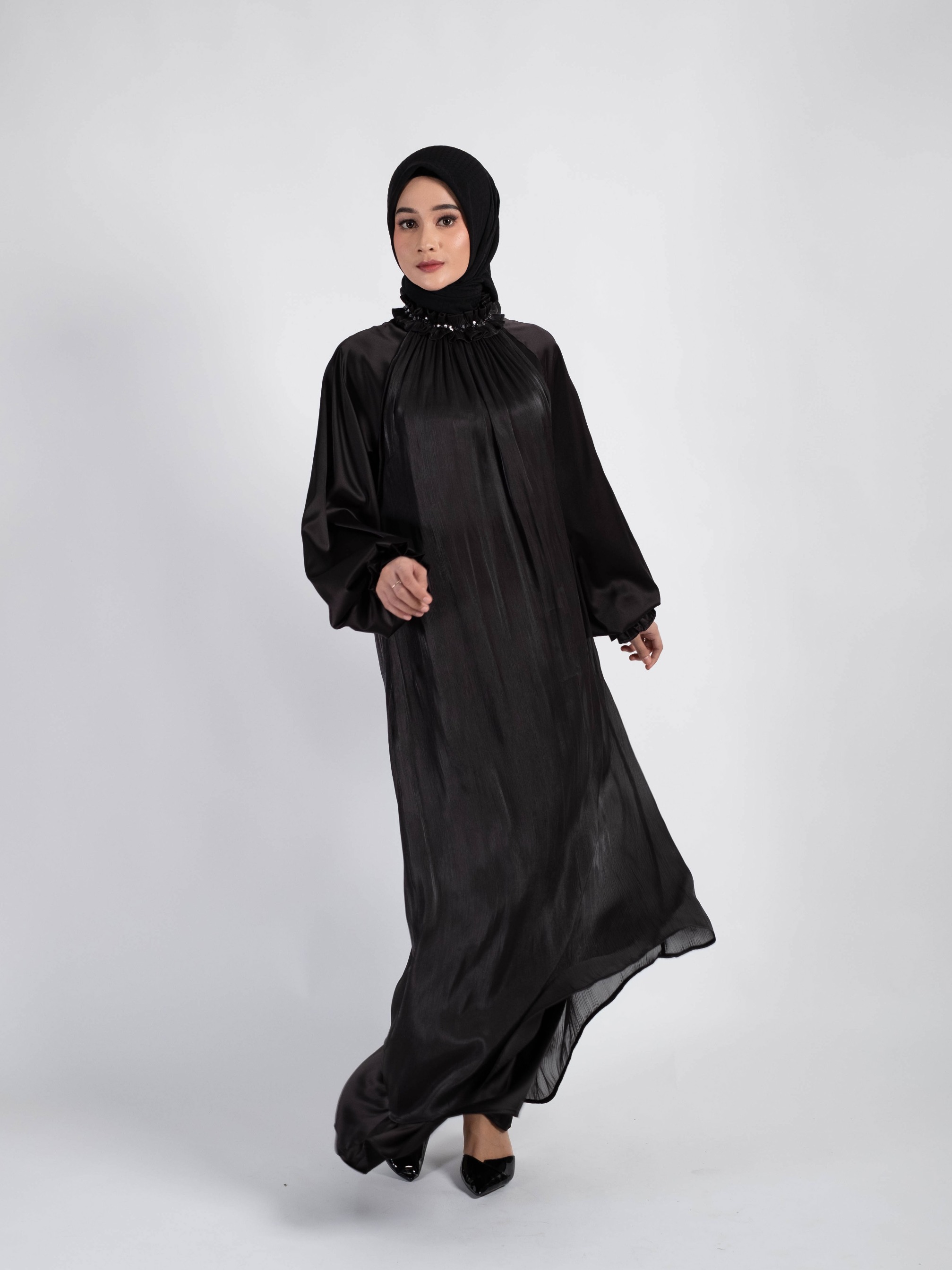 - Lengan balon dan berkaret (wudhu friendly)