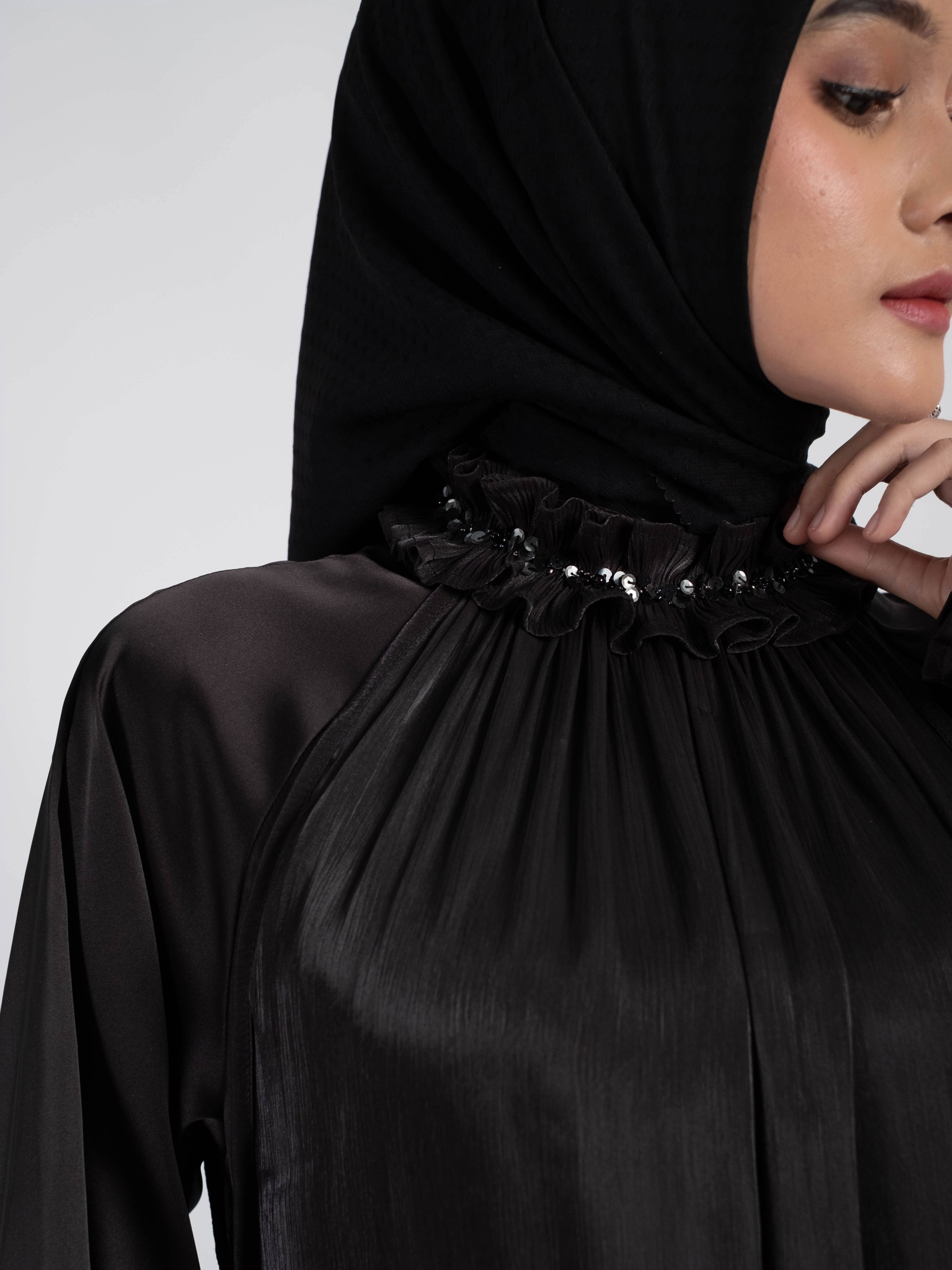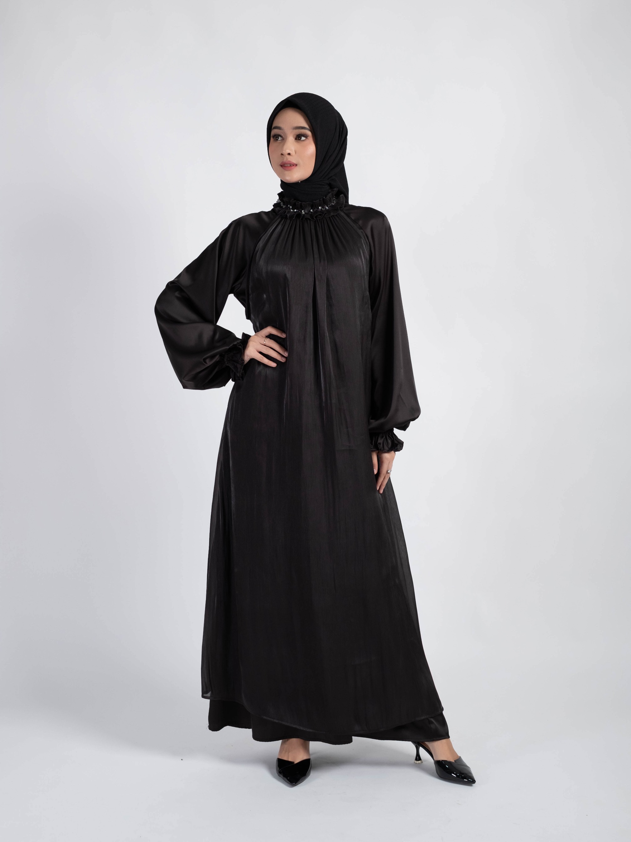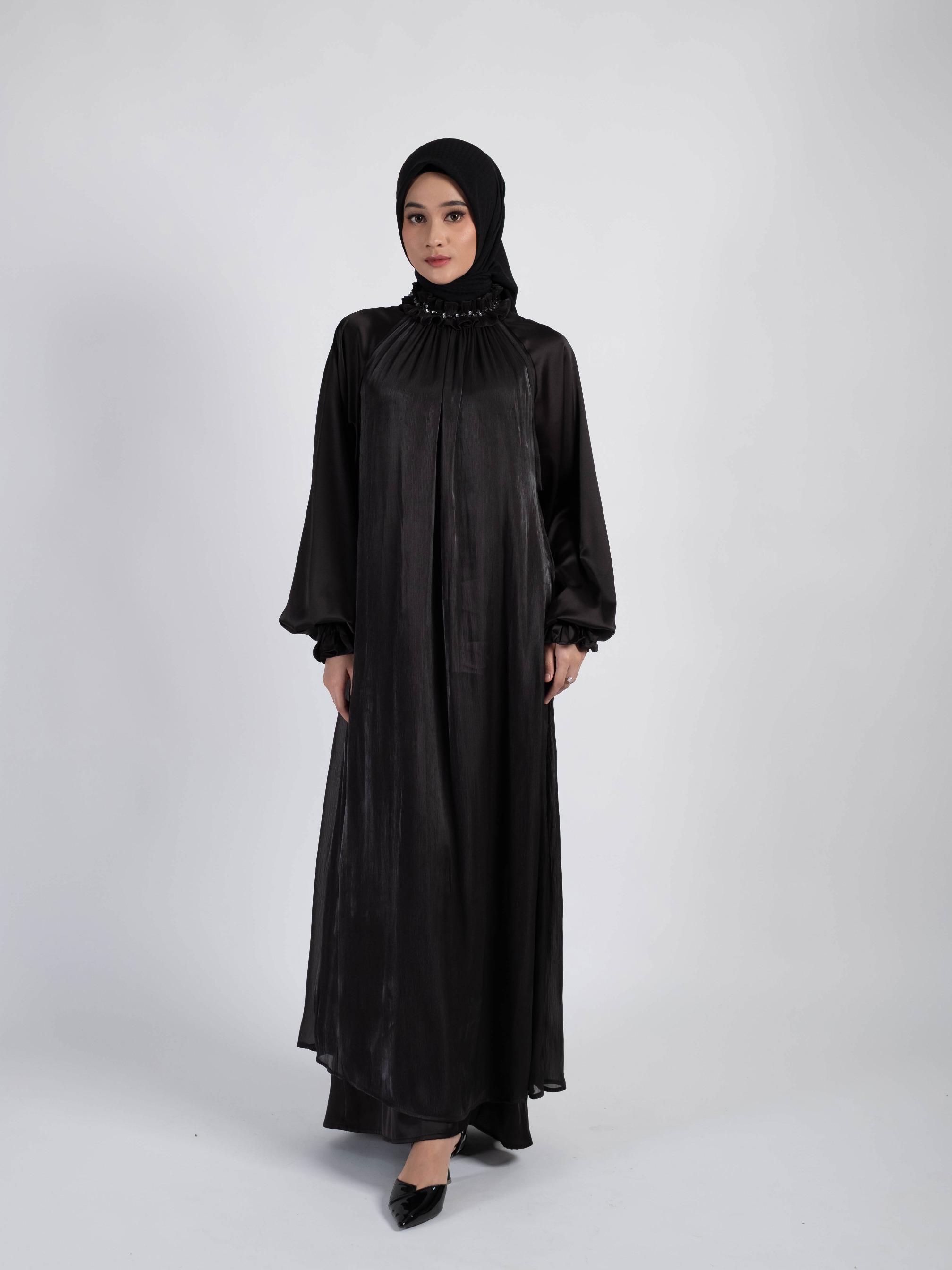 - Lengan balon dan berkaret (wudhu friendly)