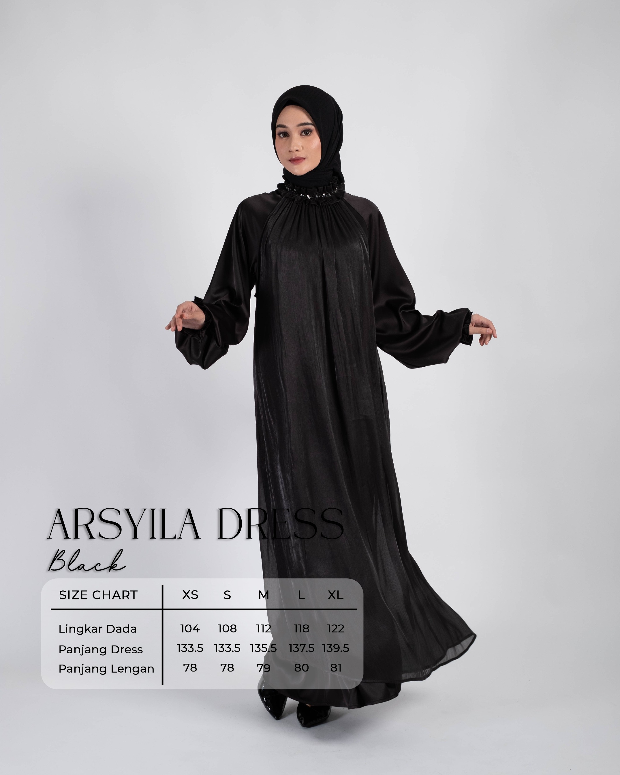 Panjang Dress : 133.5 / 133.5 / 135.5 / 137.5 / 139.5
