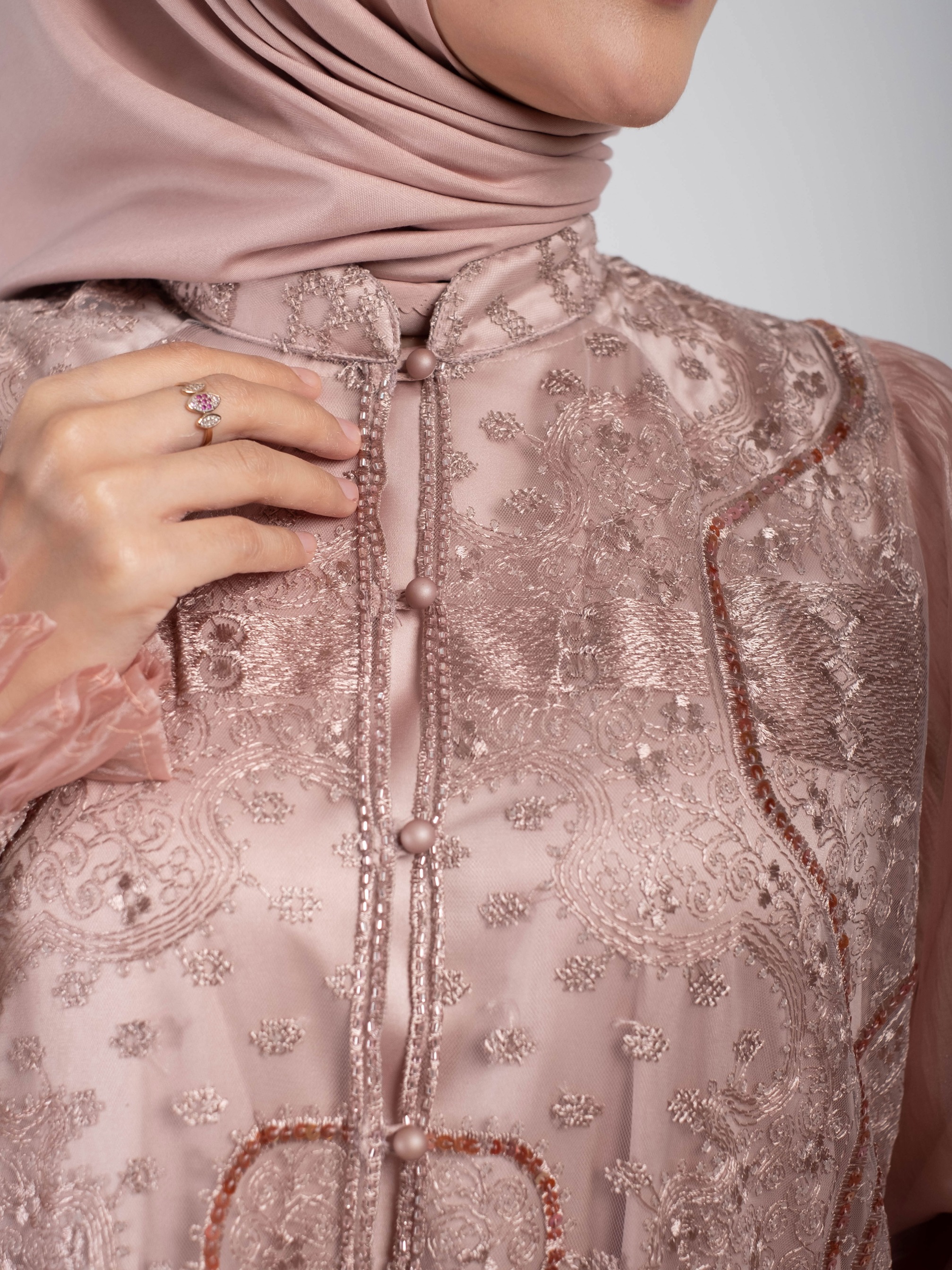 - Lengan balon dan berkaret (wudhu friendly)