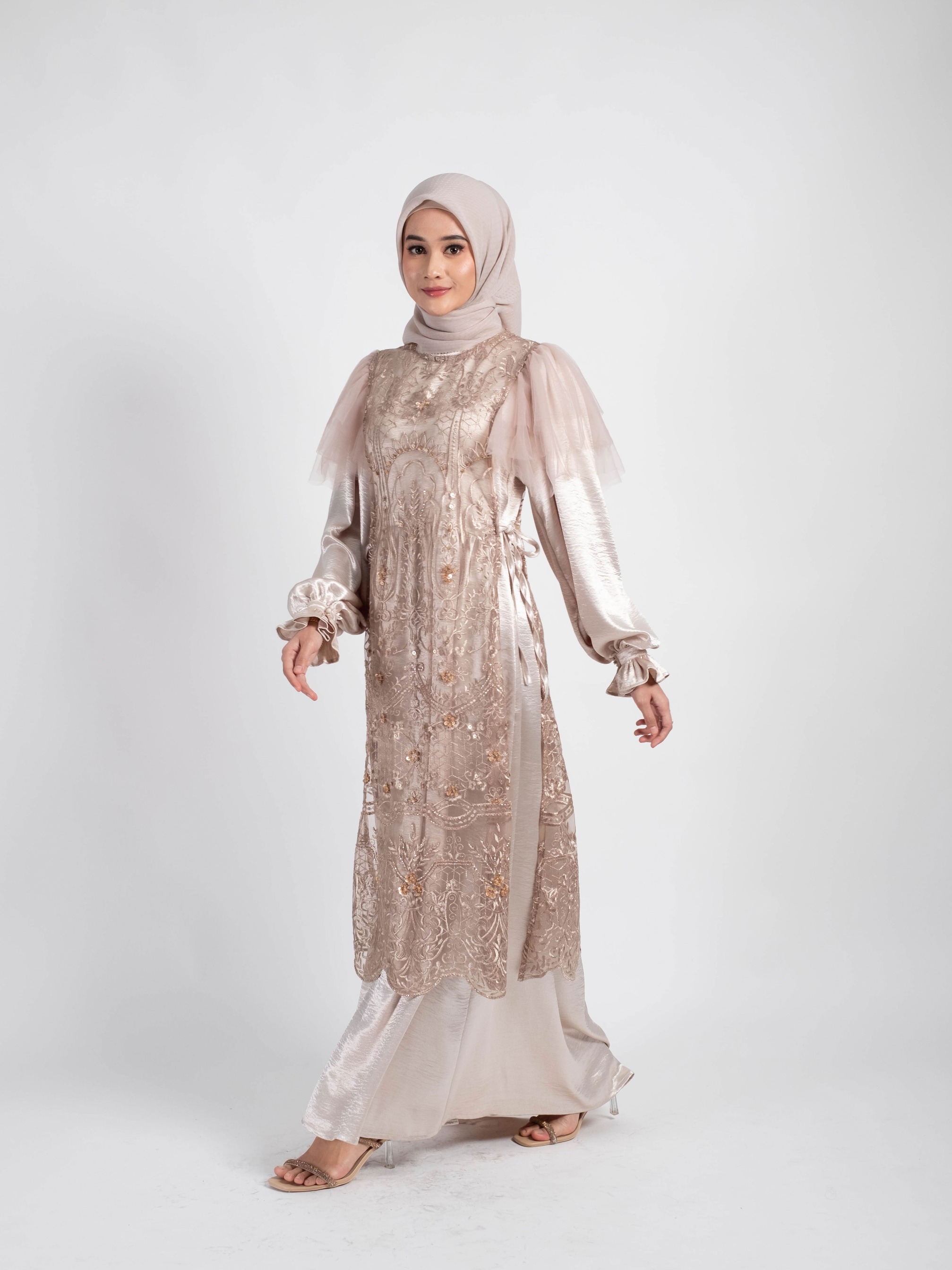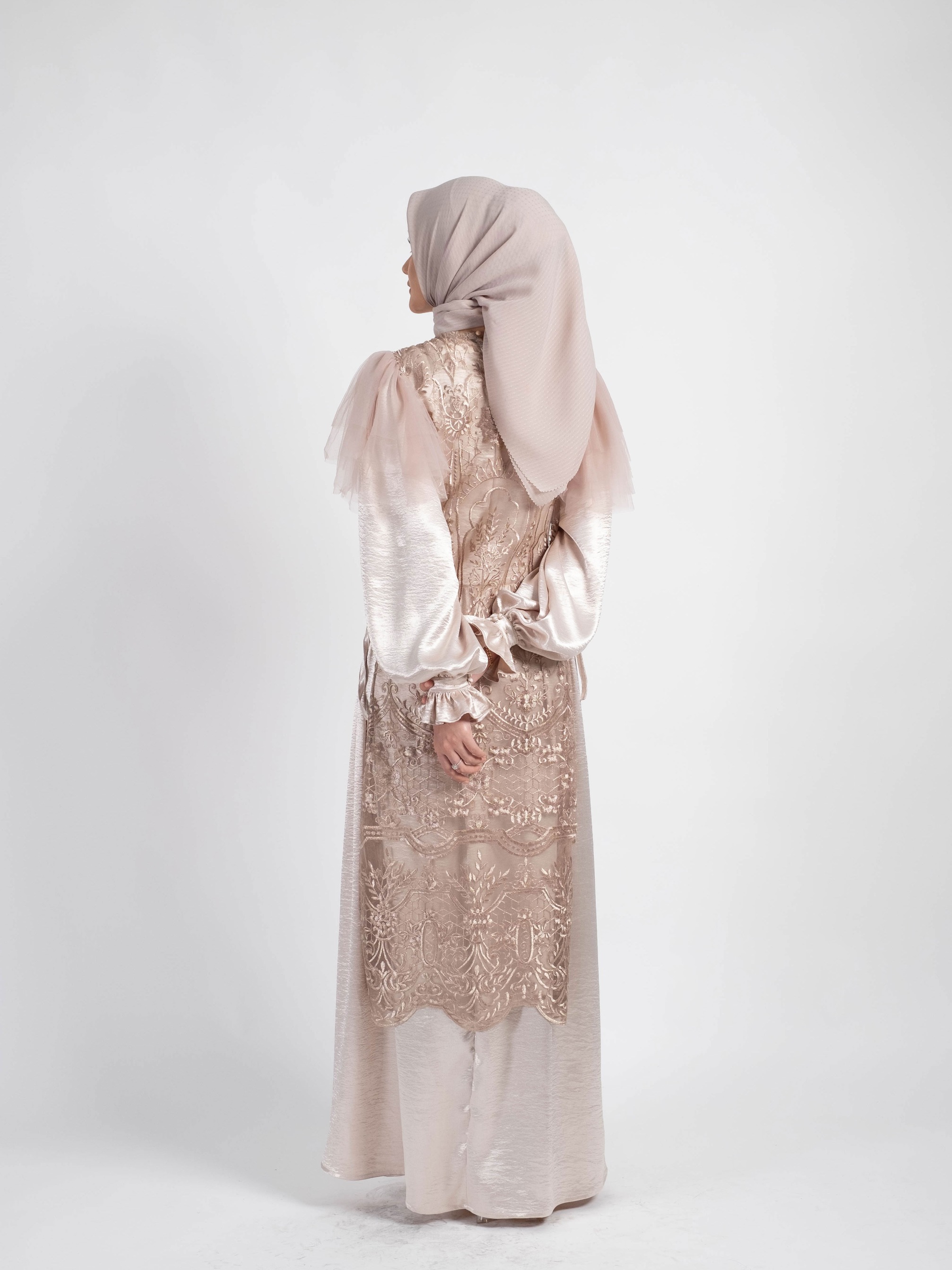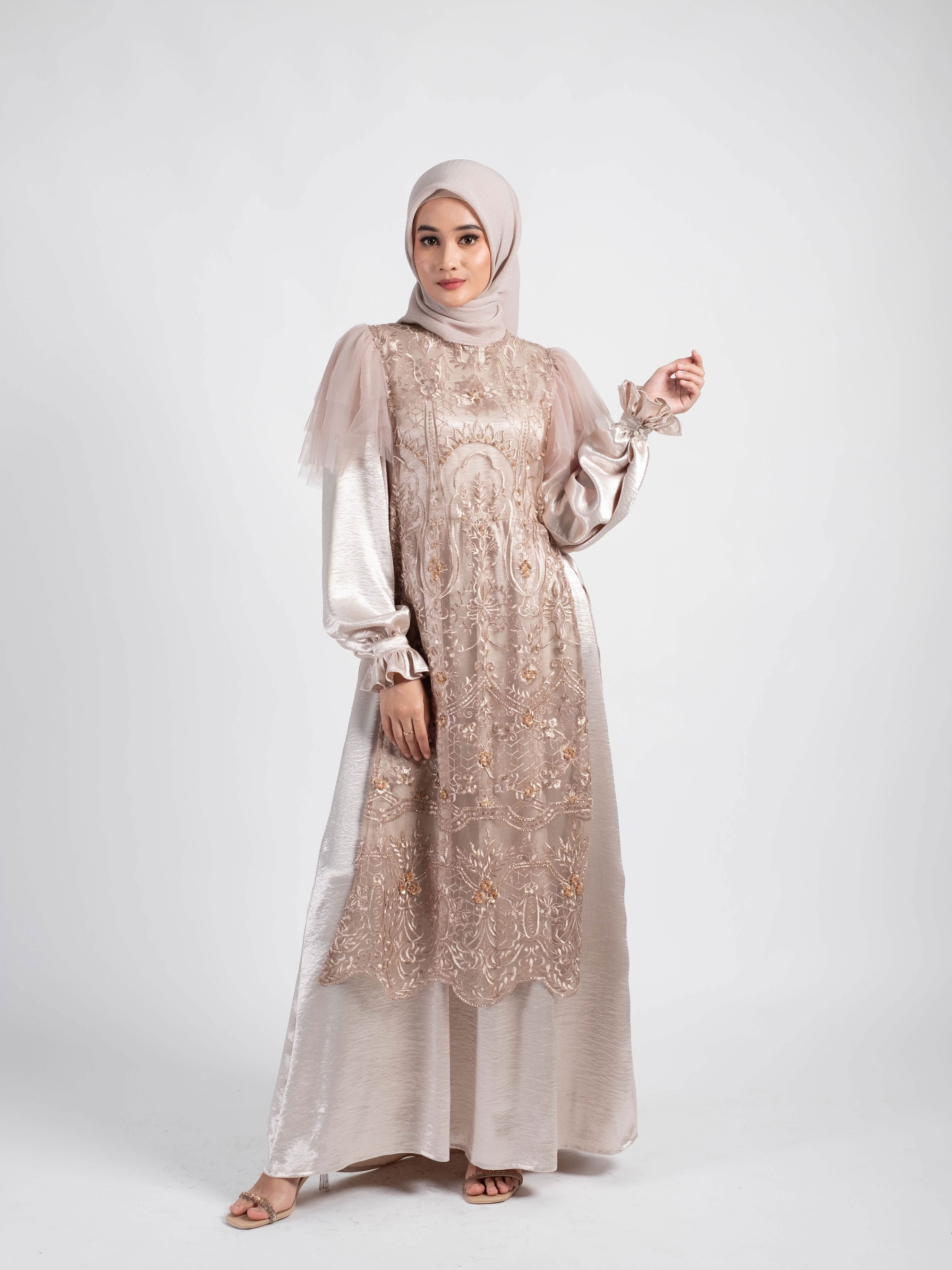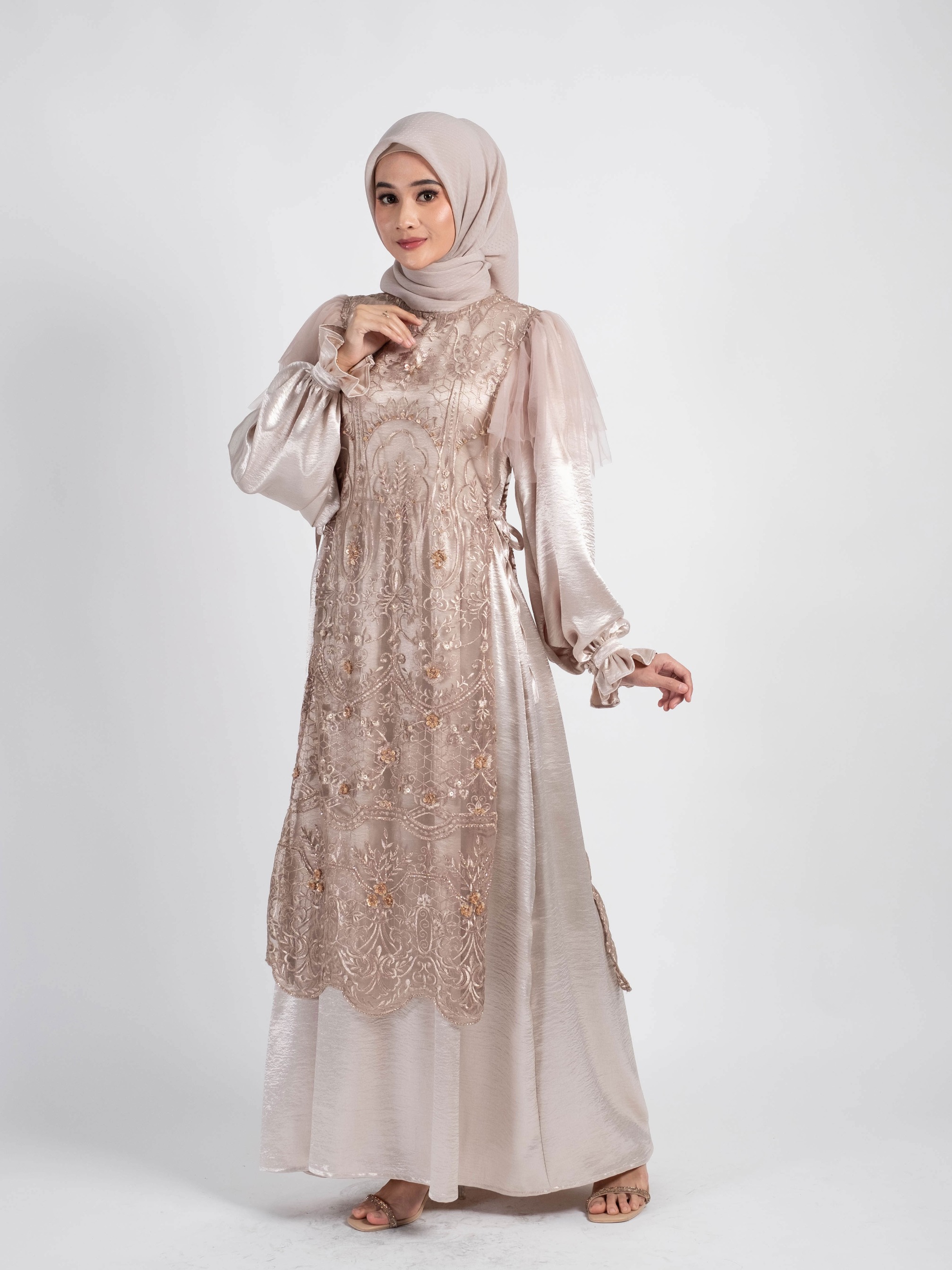- Dress brokat dengan bahan yang nyaman dan model yang loose
